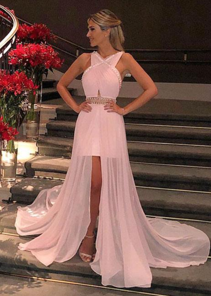 SP1121,Unique Pink Chiffon Long Prom Dress,Pink Evening Dress