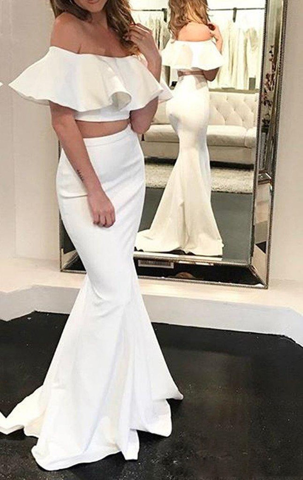 SP1125,Mermaid Off Shoulder Two Piece Prom Dress Ivory Formal Evening Gown