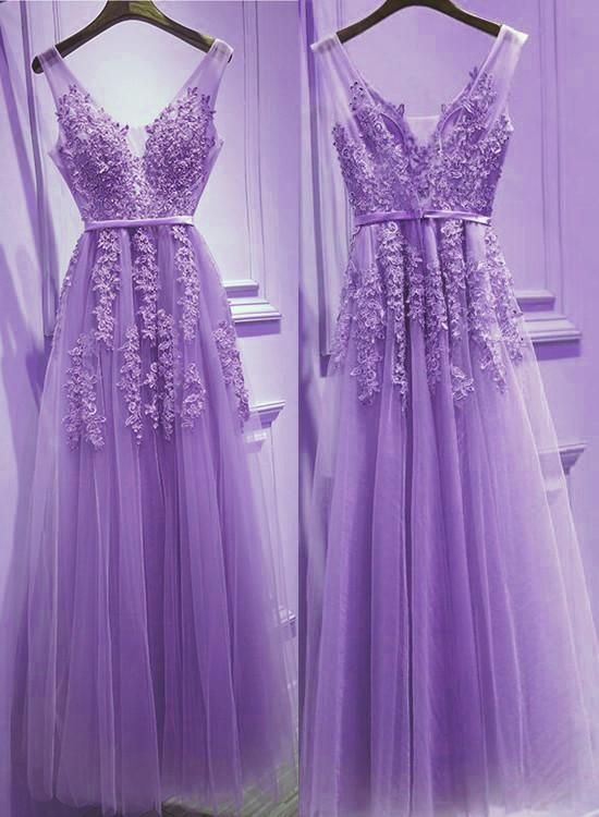 SP1143,Beautiful Light Purple Tulle Long Party Gown,A-line V-neckline Prom Dress