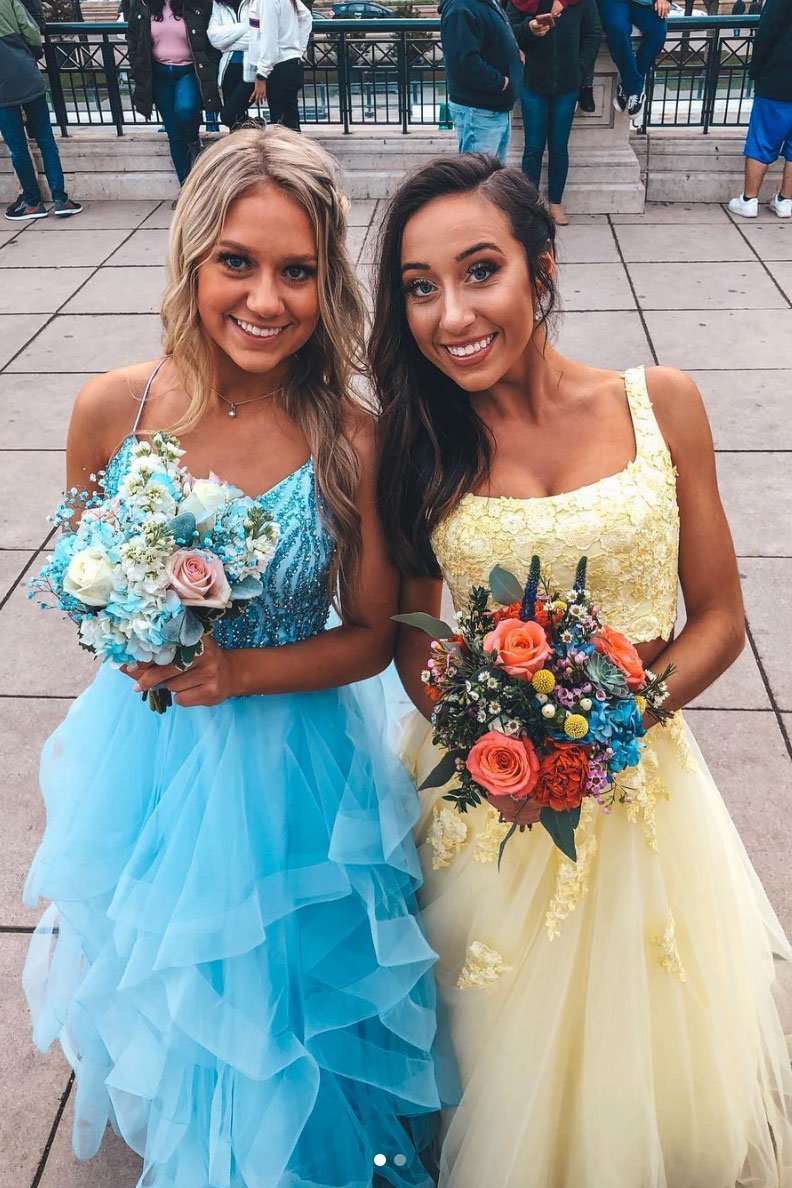 SP1148,Two Piece Square Neck Yellow Prom Dresses with Appliques