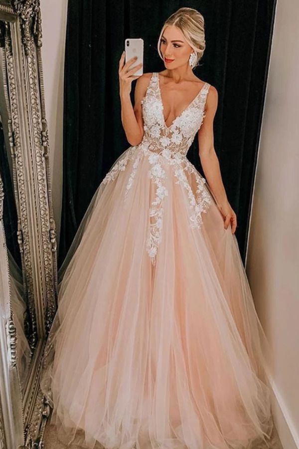 SP1150,Princess Lace Tulle Evening Party Dresses,V-back Prom Dress