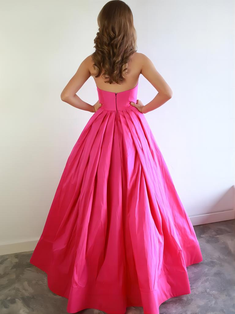 SP1186,Hot Pink Strapless Sweetheart With Cute Bow Ties A-line Long Prom Dress