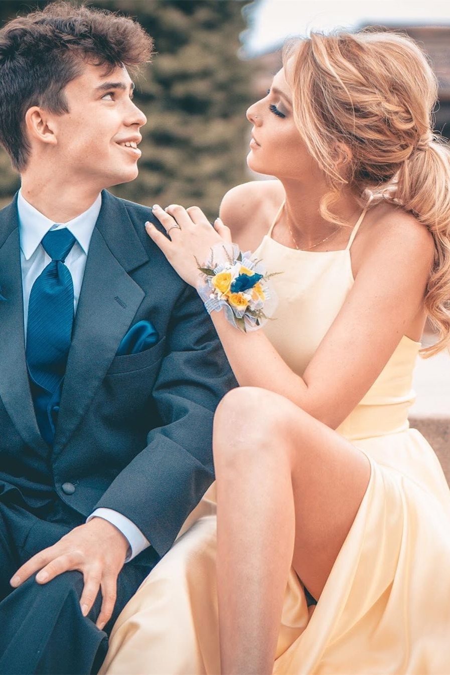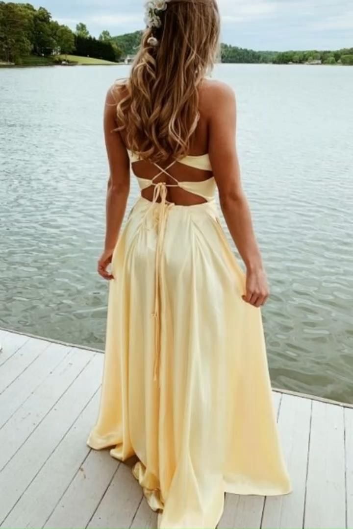 SP1273,Straps Yellow Long Prom Dress with Cross Back,Yellow Evening Dresses Long Party Gown