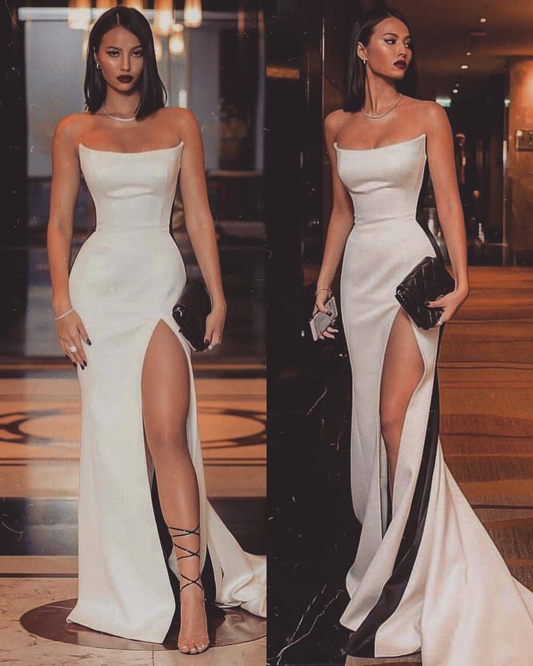 SP1291,White Strapless Mermaid Prom Dresses,Long Prom Dresses With Side Slit