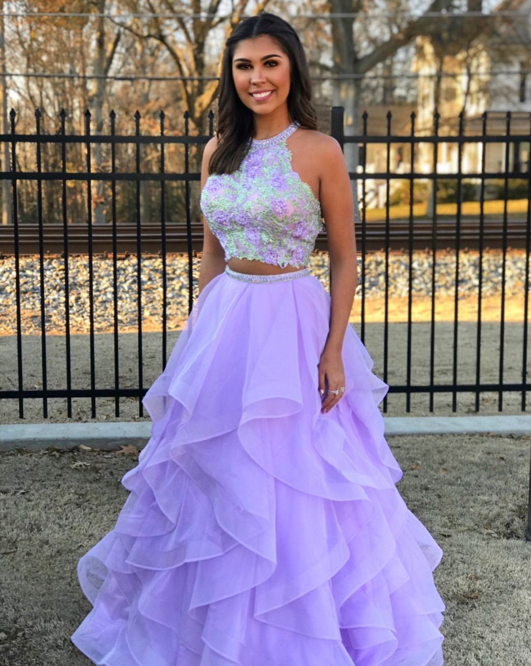 SP1316,Charming O-Neck A-Line Prom Dresses, Halter Evening Dress Prom Gowns,Two Piece Formal Women Dress,Lilac Prom Dress