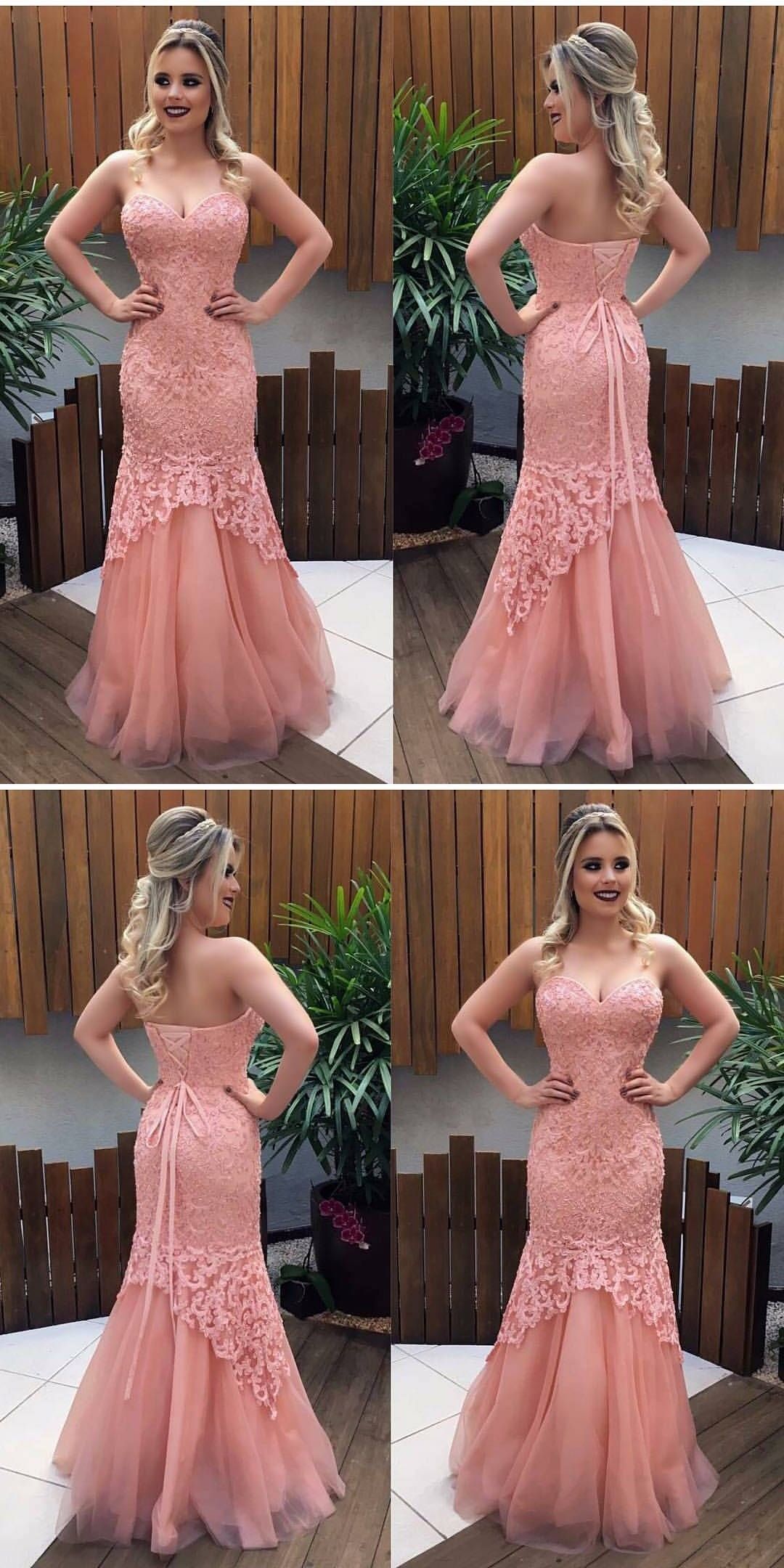 SP1332,Mermaid Sweetheart Pink Lace Prom Dress with Appliques