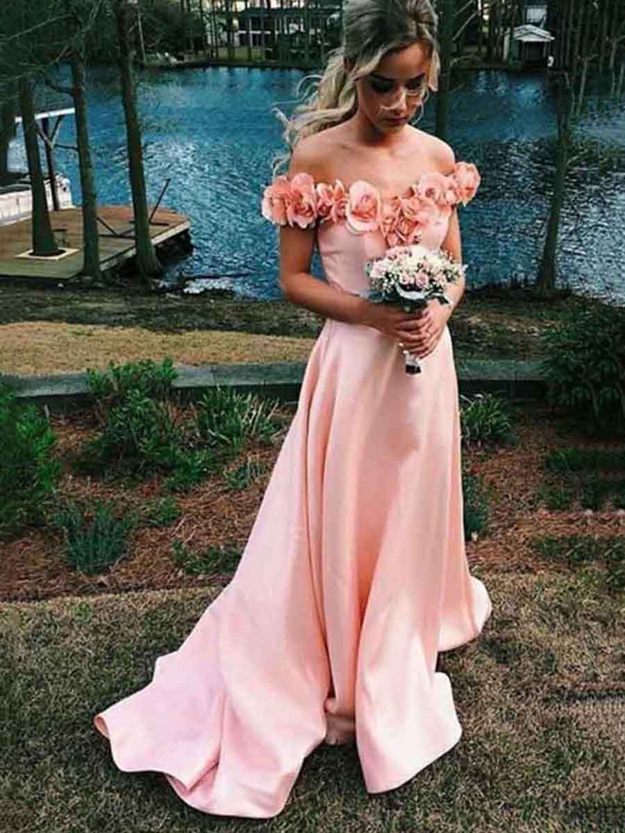 SP1385,3D flowers Off Shoulders Blush Pink Prom Dress,8th Grade Formal Dress