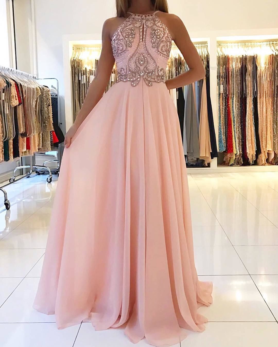 SP1411,Blush pink chiffon prom dresses,beaded long evening gown
