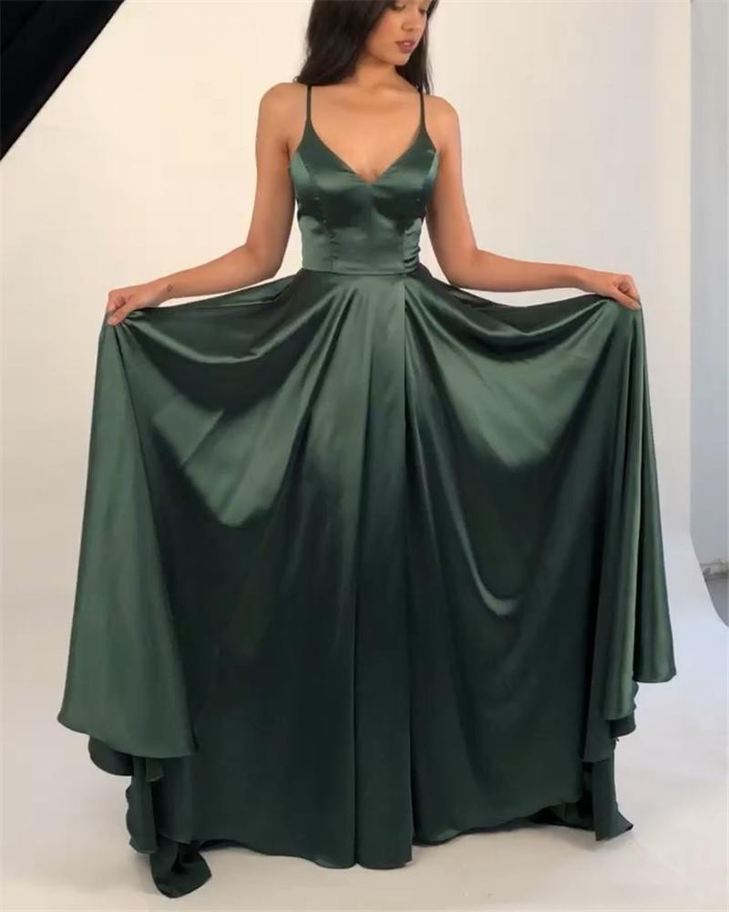 SP1460,Olivia Green Spaghetti Straps V-Neck Satin A line Evening Dresses