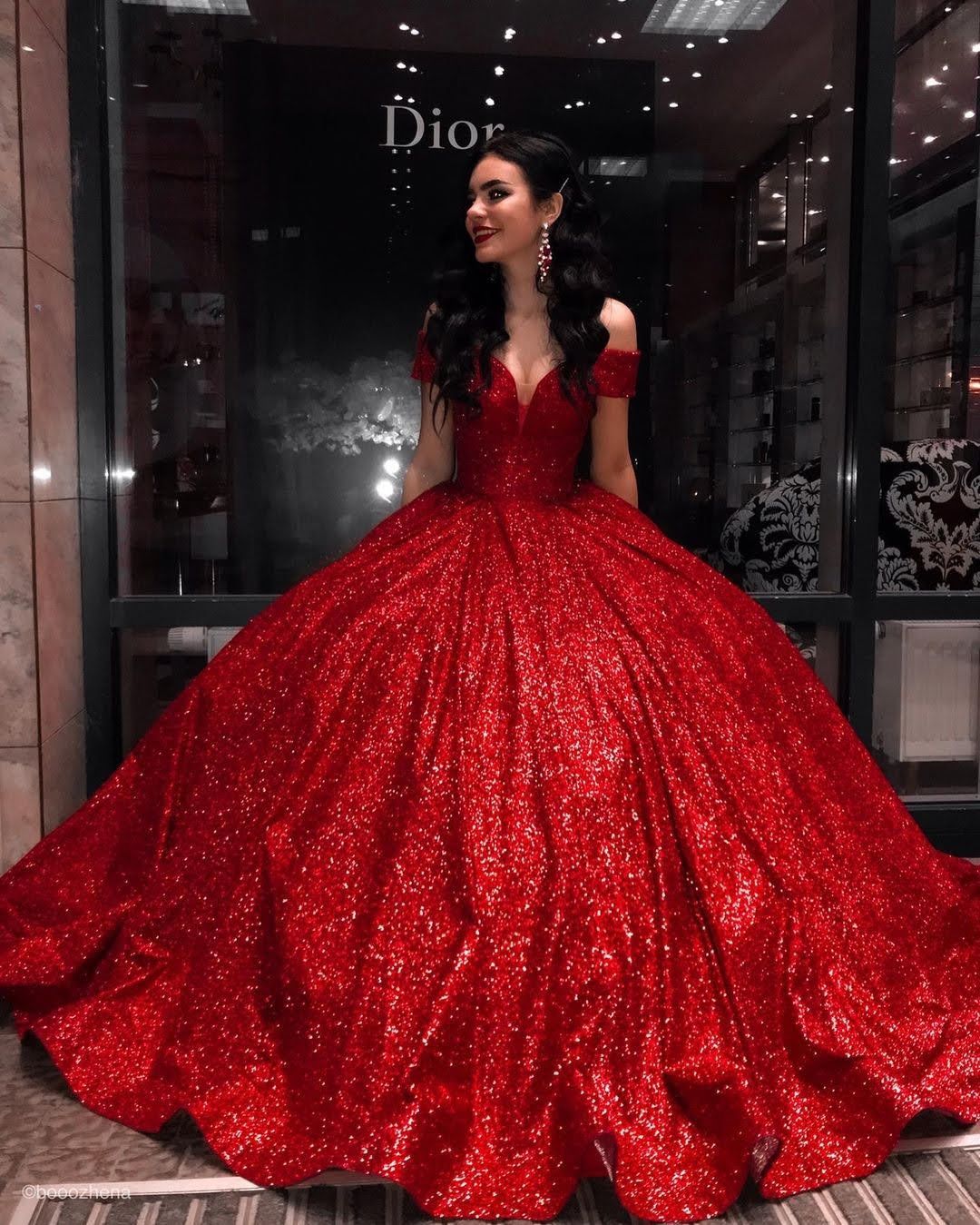 SP1568,Off the shoulder red sequin ball gown,long prom dresses,sweet 16 dresses,wedding gown