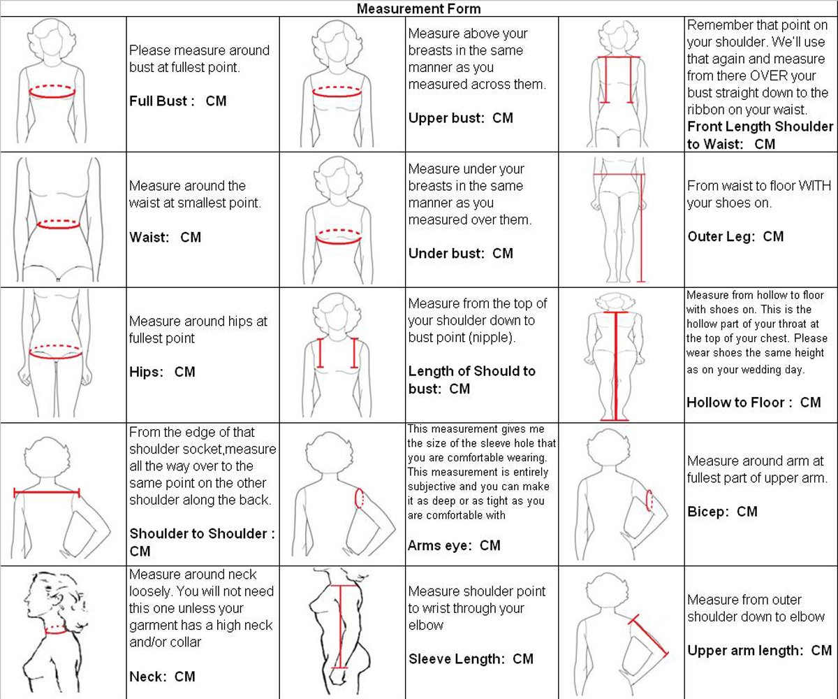 For Custom Made Dress, please complete the format below and offer us when you place the order. Or contact us, we are always at your services.