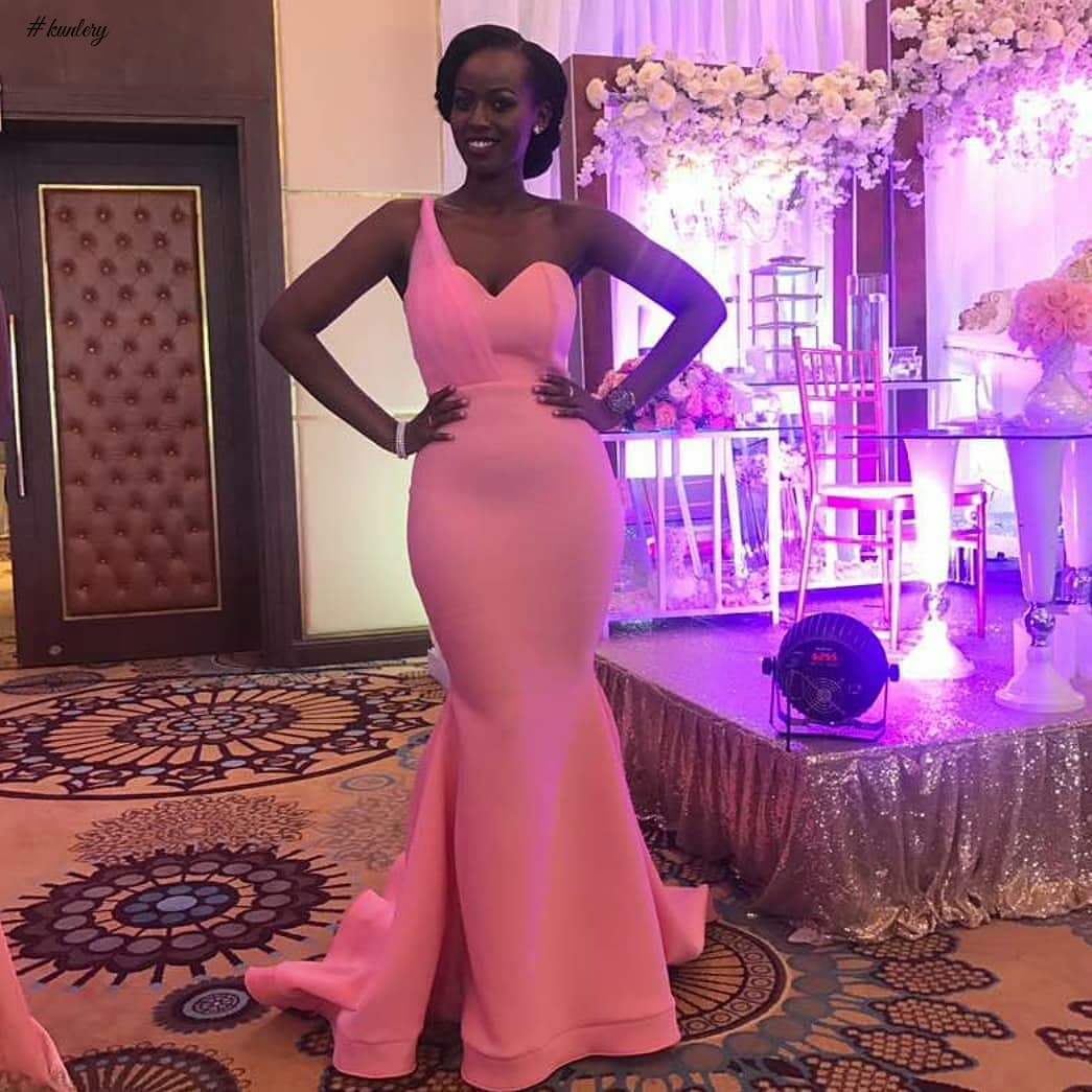 SP1671,Pink One Shoulder Sleeveless Mermaid Evening Dress