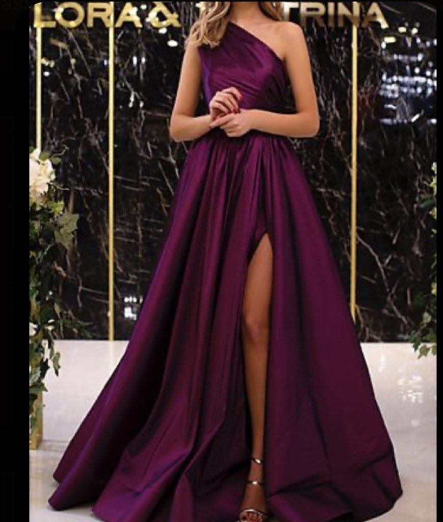 SP1736,One Shoulder Evening Dress,Grape Prom Dress,Sexy Slit Pageant Dress