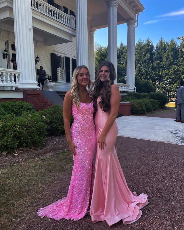 SP1857,Sparkly Mermaid Scoop Neck Pink Sequin Long Prom Dresses