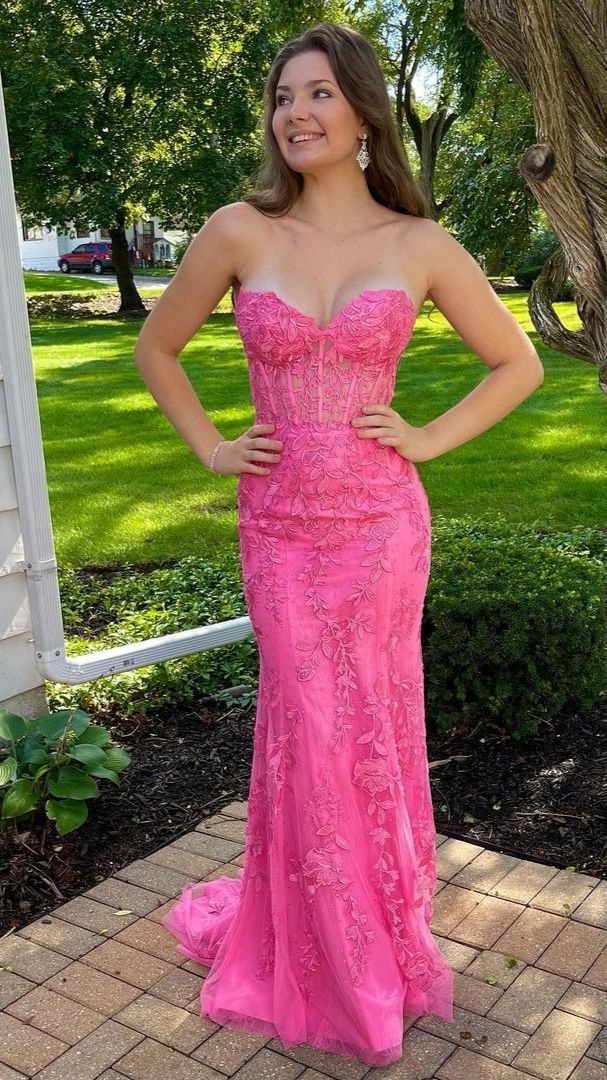 SP2019,Sweetheart pink evening dresses applique mermaid prom formal gown
