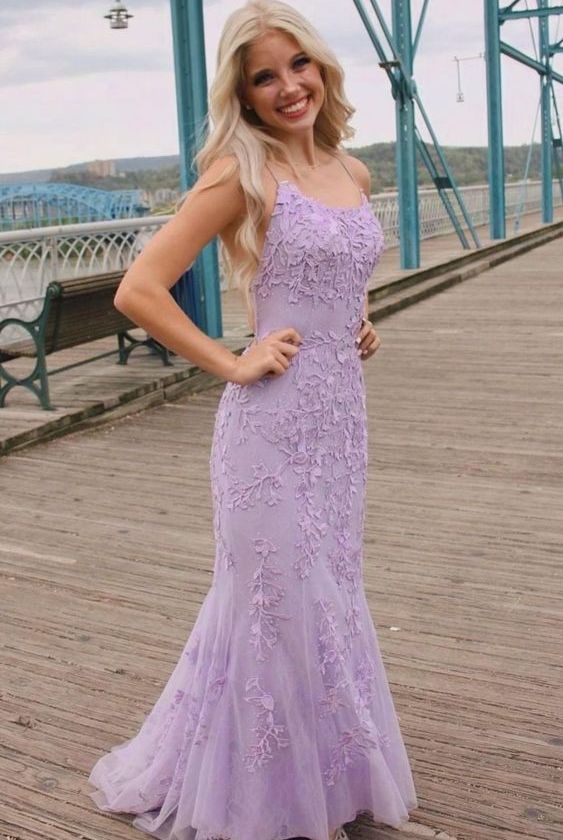 SP2023,Mermaid Lace Prom Dress Long 2022, Formal Ball Dress, Evening Dress,Mermaid Lace Dance Dresses,Lavender School Party Gown