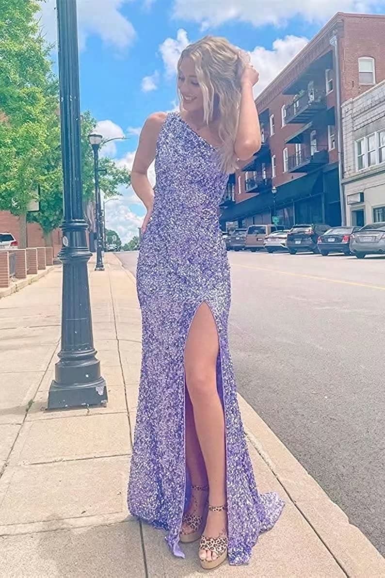 SP2045,Sparkle one shoulder mermaid prom dresses sequin long evening formal gown