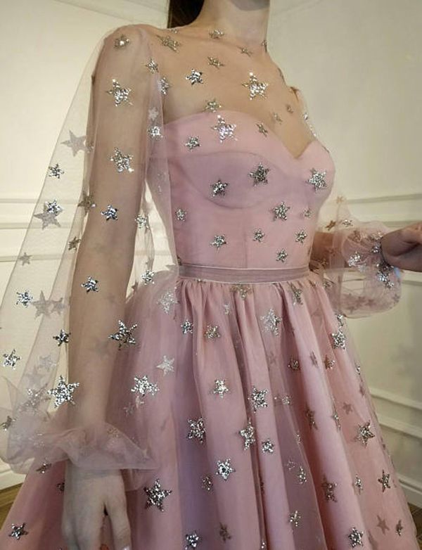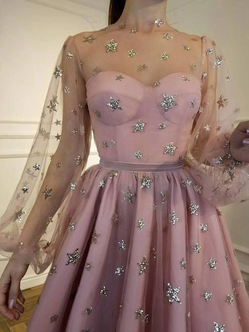 SP1603,Lace Long Sleeves Starry Night Tulle Little Black Dresses,Starry Prom Party Dresses