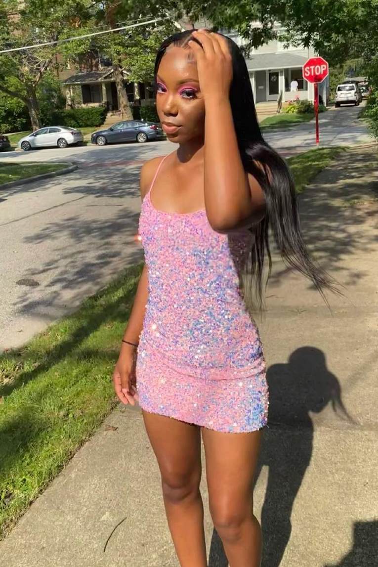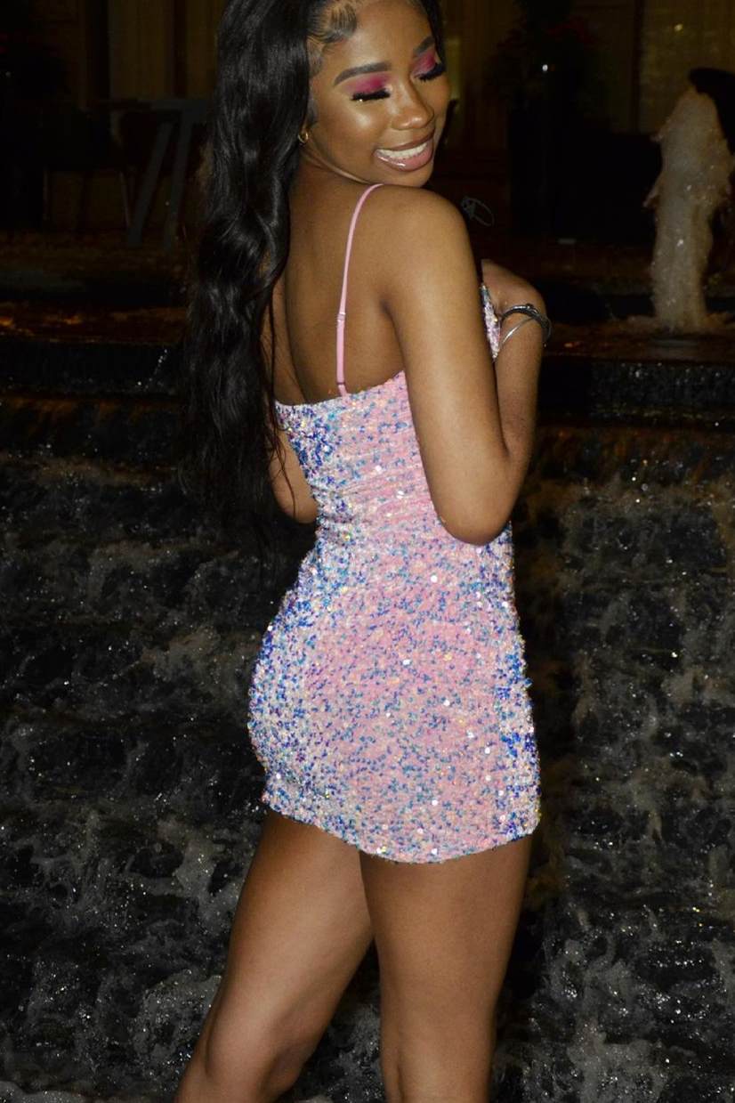 SP2189,Discount Spaghetti Straps Pink Sequins Bodycon Homecoming Dress
