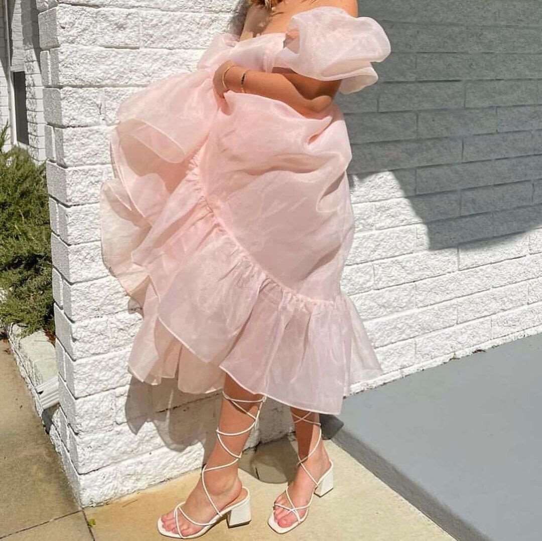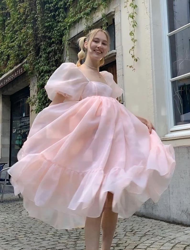 SP2239,Classic Organza A-Line Homecoming Dresses Bubble Sleeves Evening Dresses