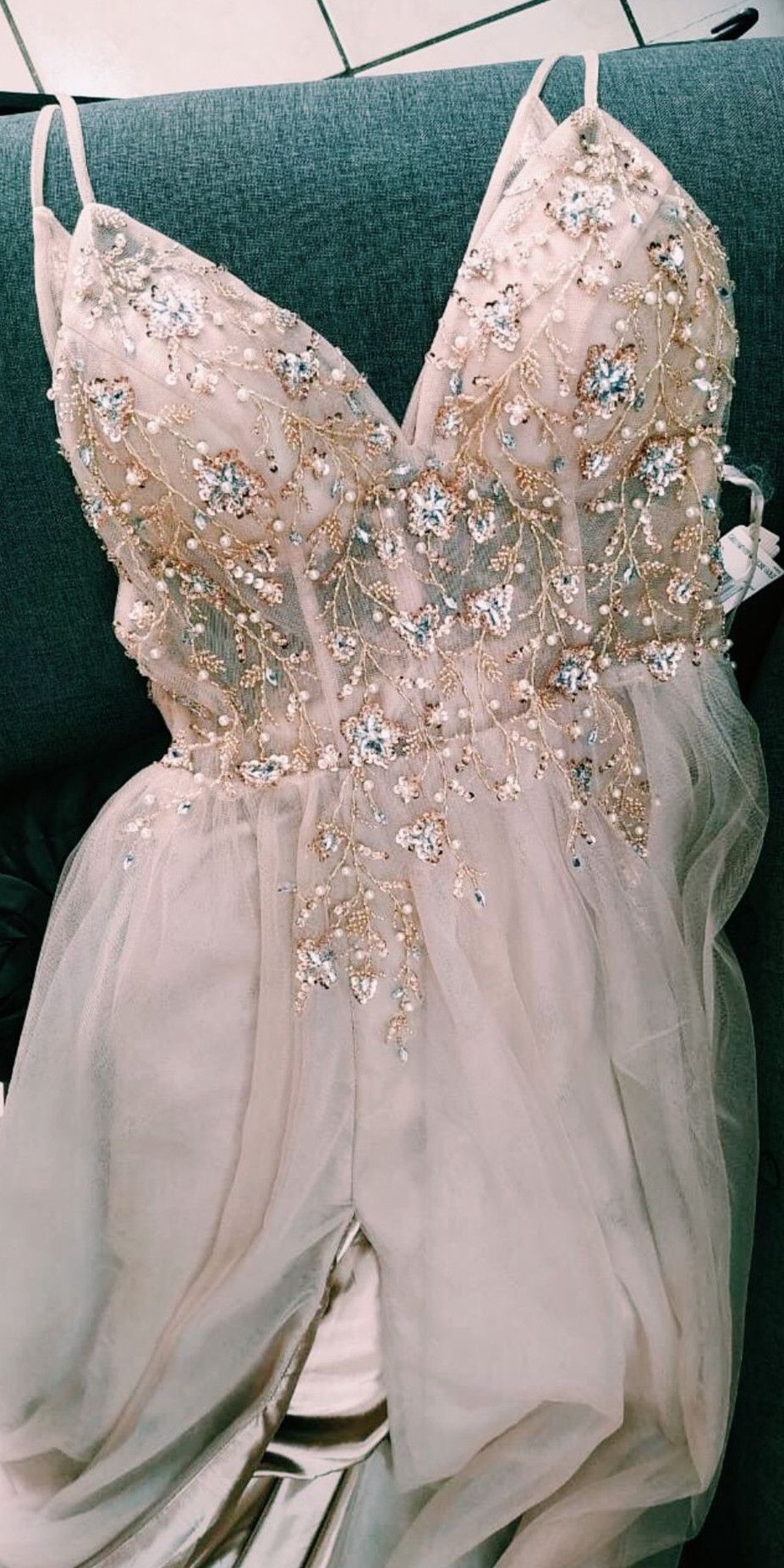 SP1020,Sexy Crystal Champagne Prom Dresses,Beaded V-Neck Evening Prom Dresses,Long Party Dress with Slit