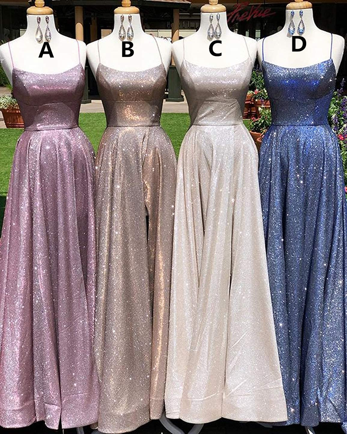 SP1414,Spaghetti Straps Cross Back A-Line Sequin Long Evening Prom Dresses