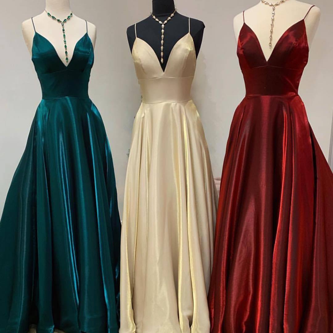 SP1415,Simple A Line Spaghetti Straps Burgundy Prom Dresses Green Evening Dresses
