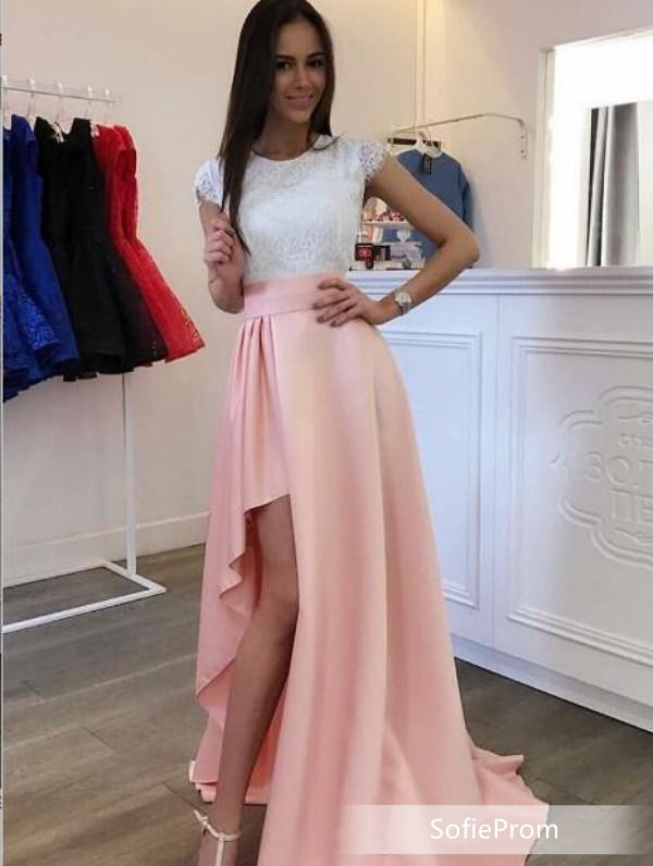 SP1909,Simple Round Neck Cap Sleeves Lace top Long Prom Dress