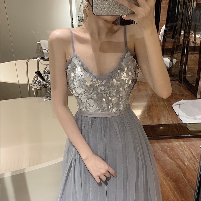 SP1933,Grey spaghetti straps prom dress,long evening gown