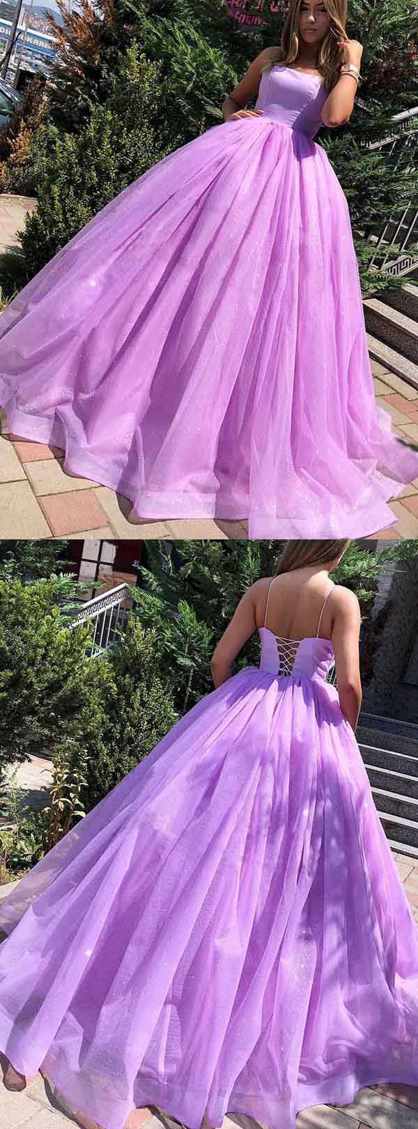 SP1937,Lilac ball gown,spaghetti straps tulle prom dress,tie back evening party gown