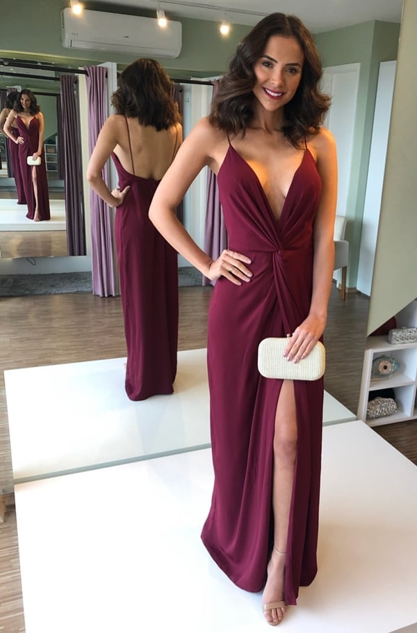 SP1968,Burgundy spaghetti straps long prom dresses,side slit evening party dress,open back special occasion dress
