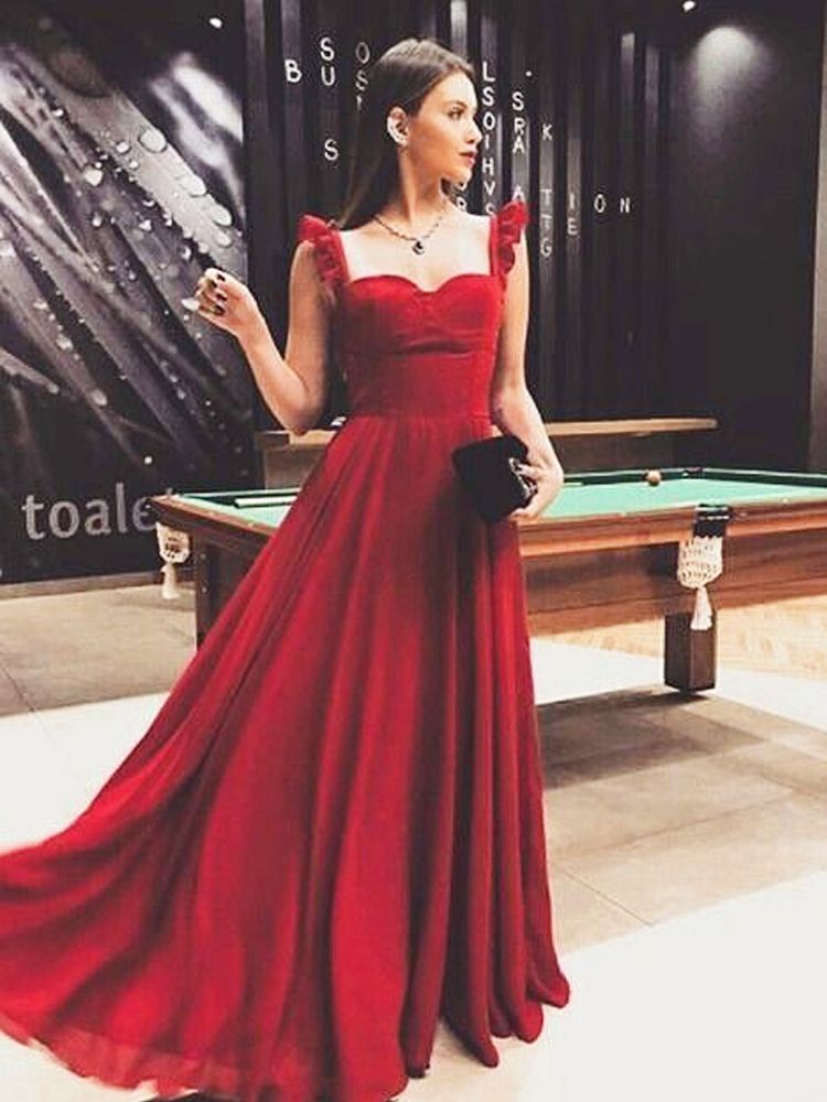 SP2032,Red chiffon prom dresses sleeveless evening party dress
