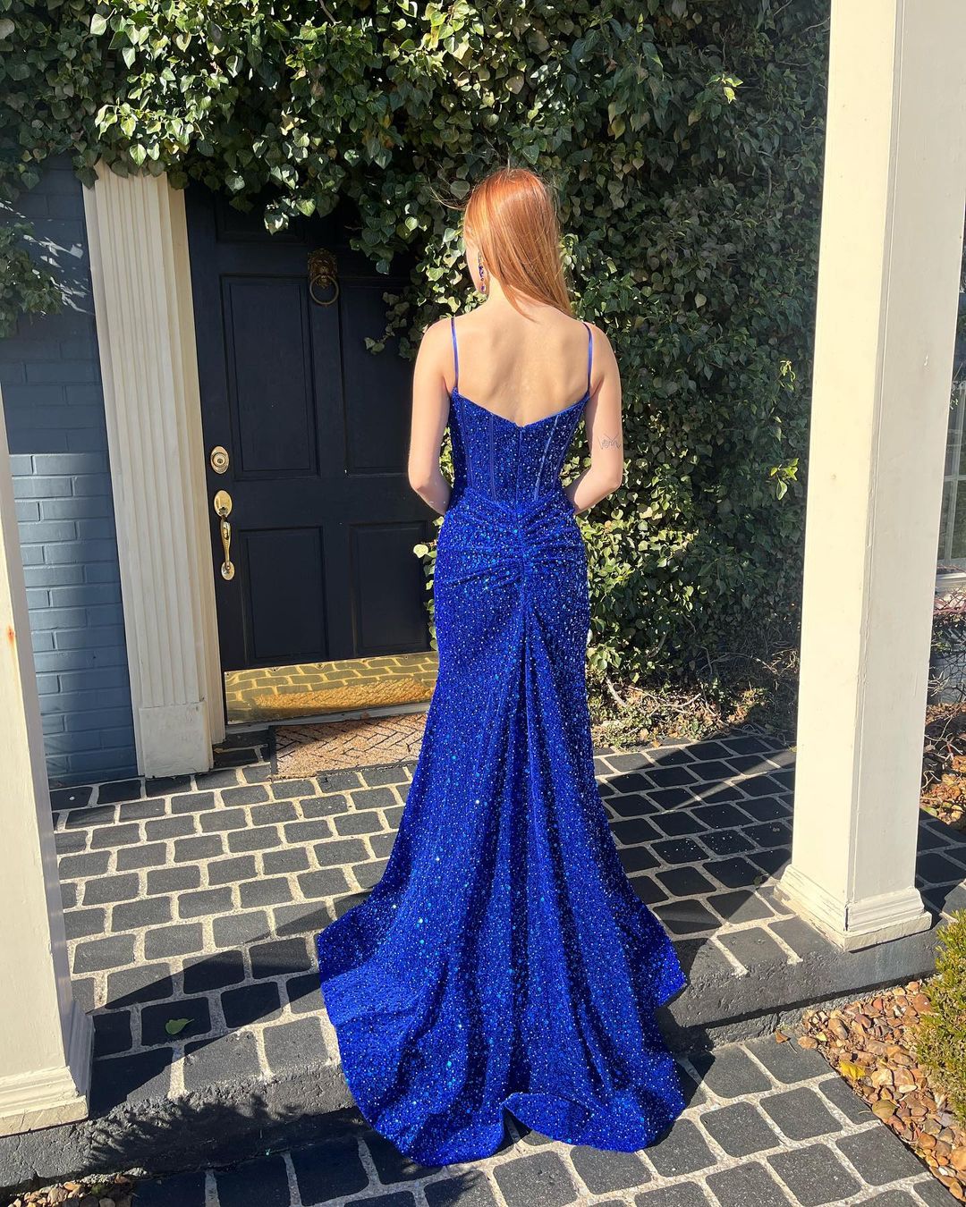 SP2249,Cute Mermaid Straps Royal Blue Sequins Prom Dresses