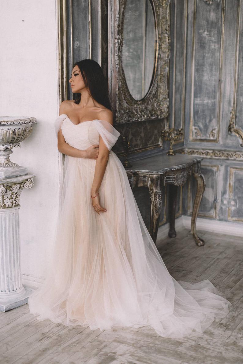 SP1025,White Off the Shoulder Tulle Pleated Wedding Dresses,Cheap Hands Made Bridal Gown