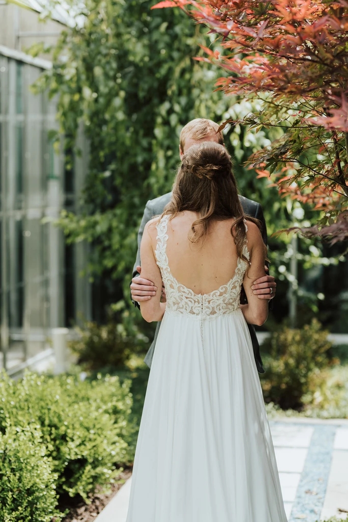 SP1585,Elegant A-Line V Neck Open Back White Chiffon Beach Wedding Dresses with Appliques