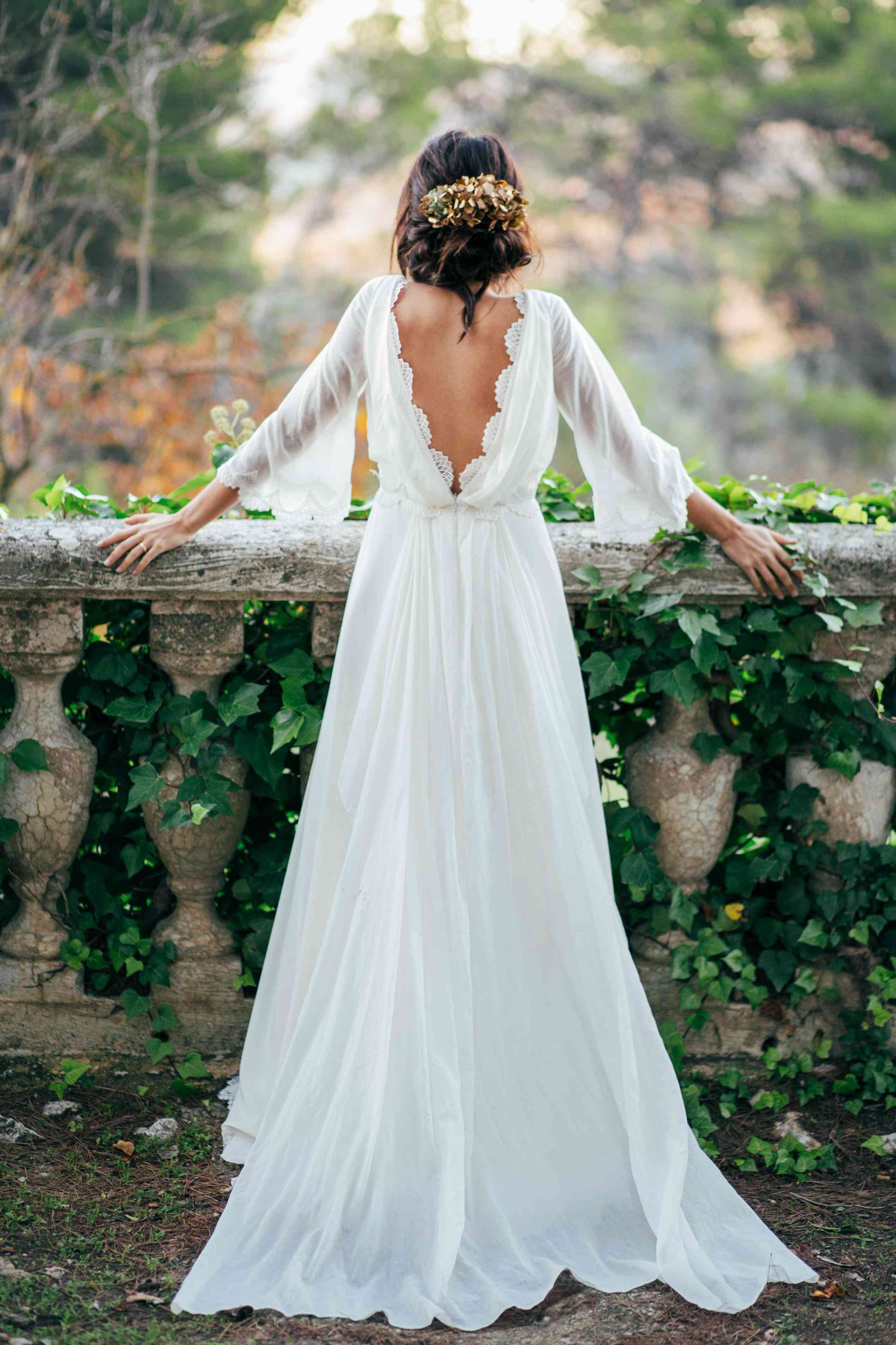 SP1972,Classic wedding dresses,v-back wedding gown,chiffon lace bridal dresses,white long wedding dress