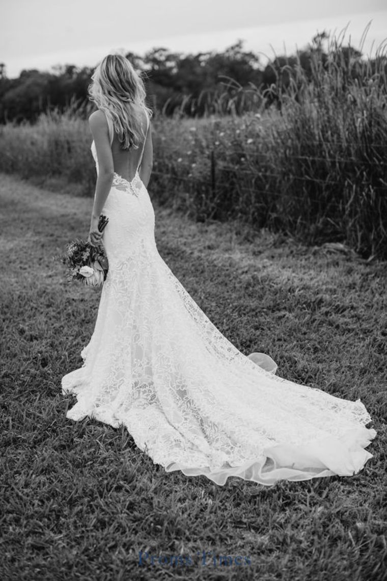 SP2128,New Floral Lace Spaghetti Straps Wedding Dresses Mermaid Court Train Open Back Lace Wedding Gown