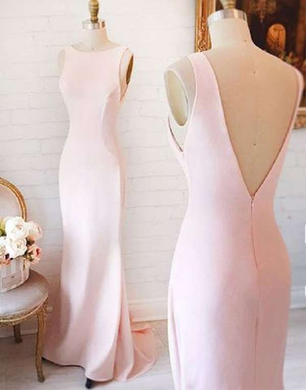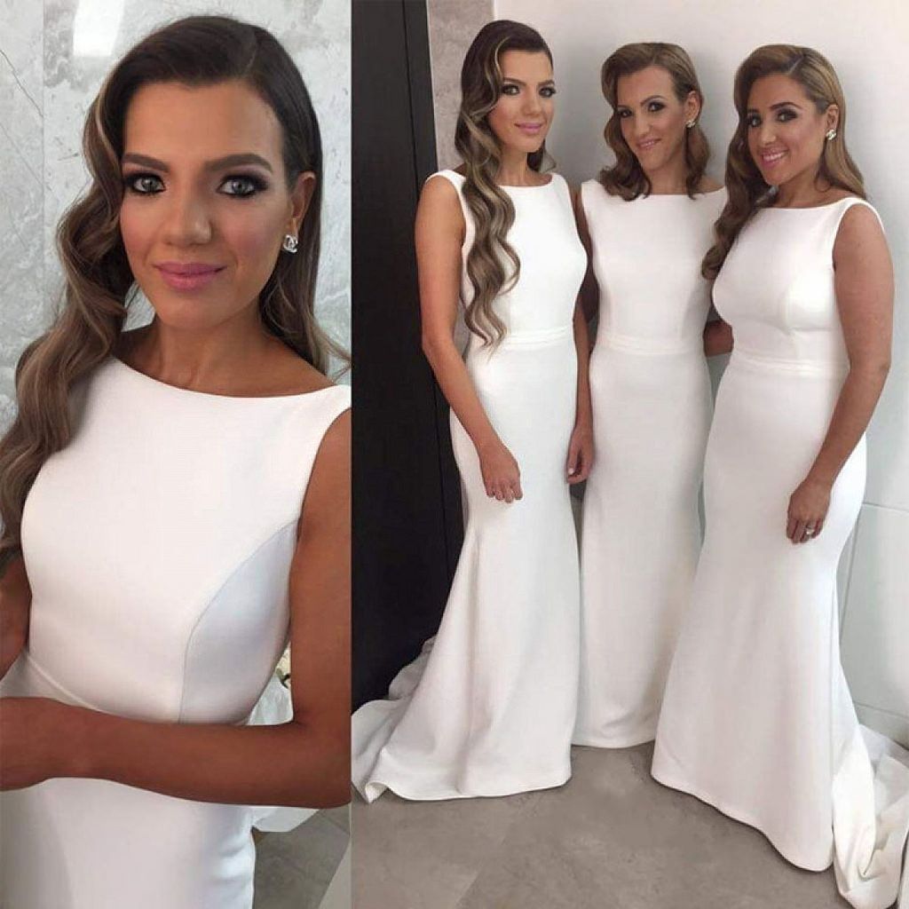 SP1892,White Sleeveless Floor Length Satin Sweep Mermaid Bridesmaid Dress