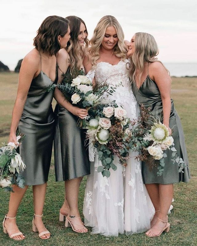 SP2133,Dark green spaghetti straps bridesmaid dresses,silk satin midi dress