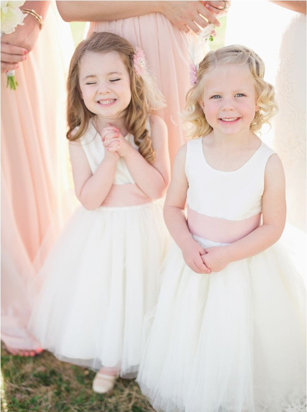 SP1599,Sweet Flower Girl Dresses with Pink Sash,Bowknot Blush Pink Flower Girl Dresses